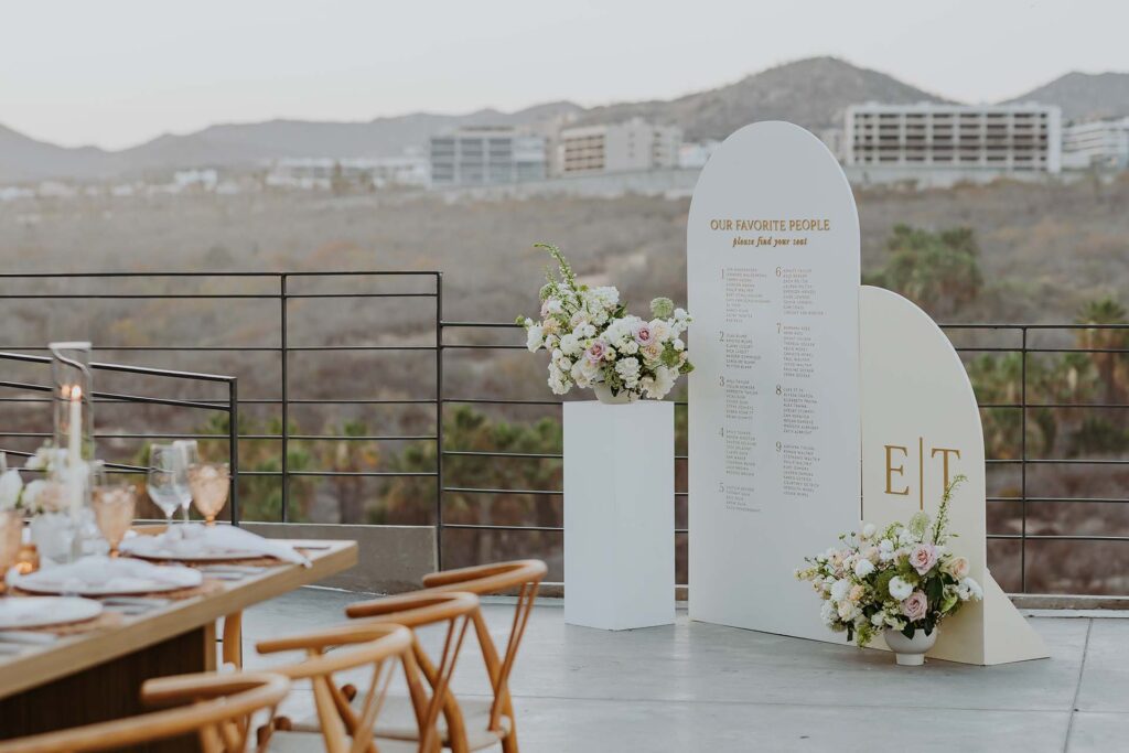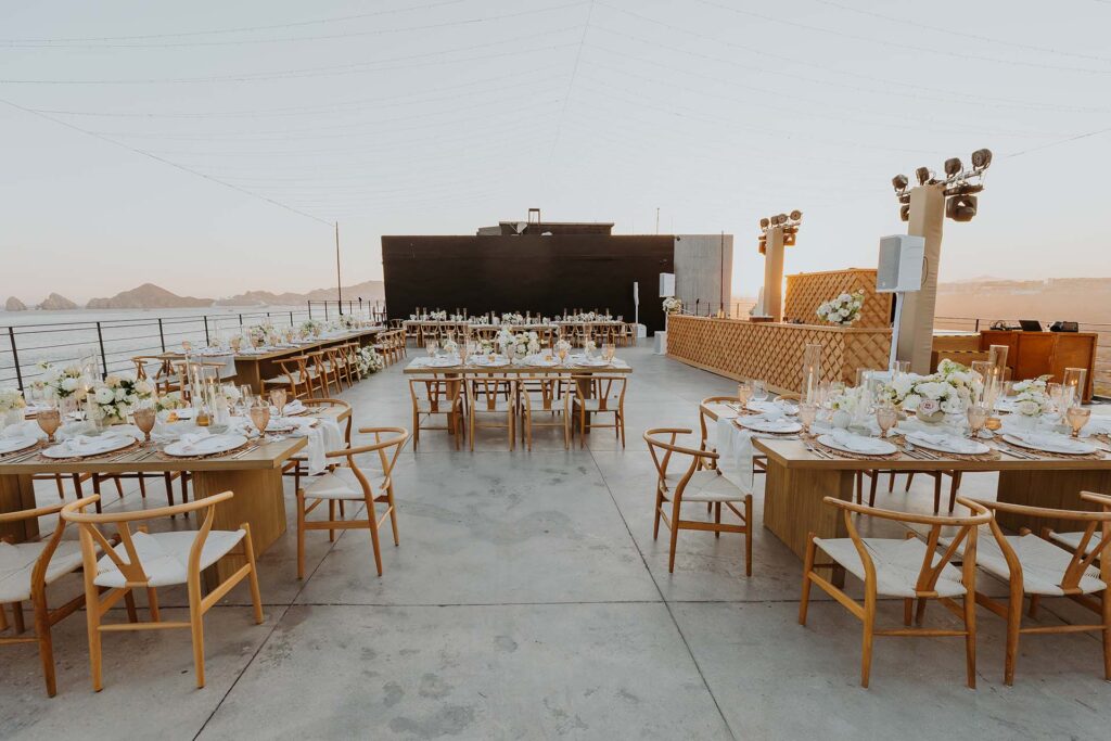 The ceremony overlooked the ocean, framed by soft coastal breezes and neutral-toned florals. Ivory garden roses, creamy dahlias, and blush roses created an air of quiet luxury, blending seamlessly with The Cape’s modern, minimalist design. The result was an aesthetic that felt refined yet natural—romantic Cabo style at its best.